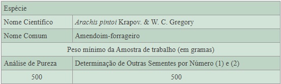 PESO MÍNIMO DAS AMOSTRAS DE TRABALHO PARA ANÁLISE DE PUREZA E PARA DETERMINAÇÃO DE OUTRAS SEMENTES POR NÚMERO PARA ESPÉCIES DE LEGUMINOSAS (FABACEAE) FORRAGEIRAS.