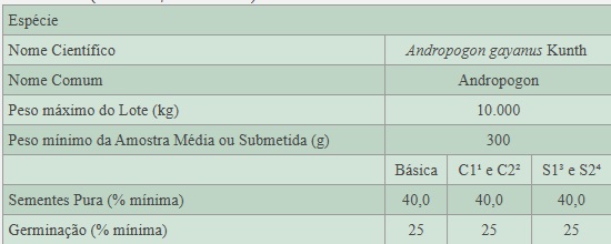 PADRÃO DE CAMPO PARA PRODUÇÃO DE SEMENTES DE ESPÉCIES FORRAGEIRAS DE CLIMA TROPICAL