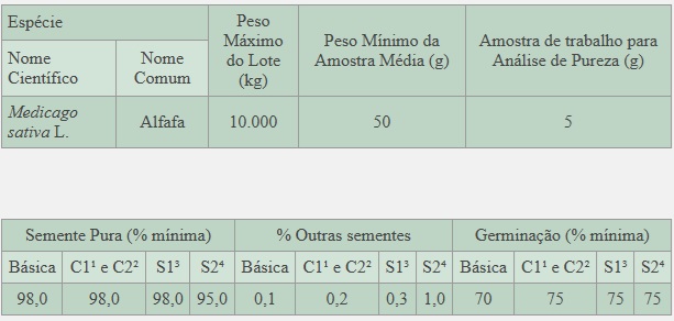 PADRÕES DE IDENTIDADE E DE QUALIDADE PARA A PRODUÇÃO DE SEMENTES DE ESPÉCIES FORRAGEIRAS DE CLIMA TEMPERADO DA FAMÍLIA FABACEAE – LIMITE MÁXIMO POR ESPÉCIE